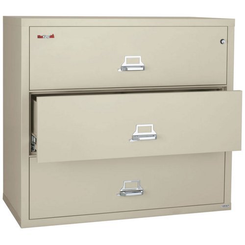 -. Title : Fireproof Three Drawer Lateral File 31" W Parchment