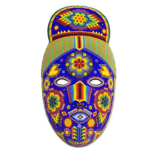NOVICA Decorative Huichol Bead Work Papier Mache Mask, Multicolor, 'Life Fortune And Success'
