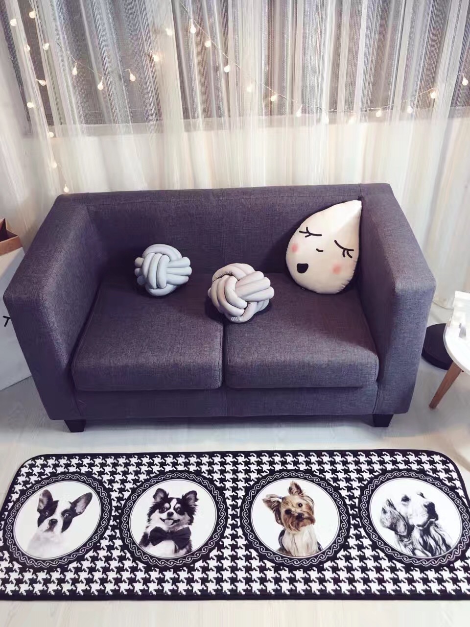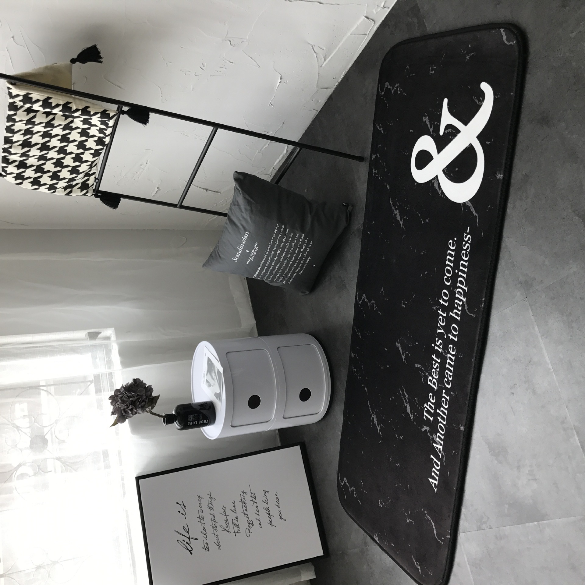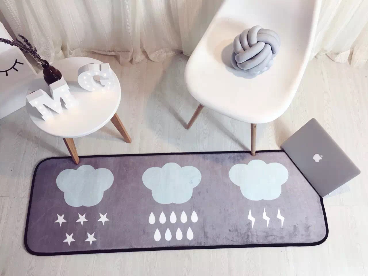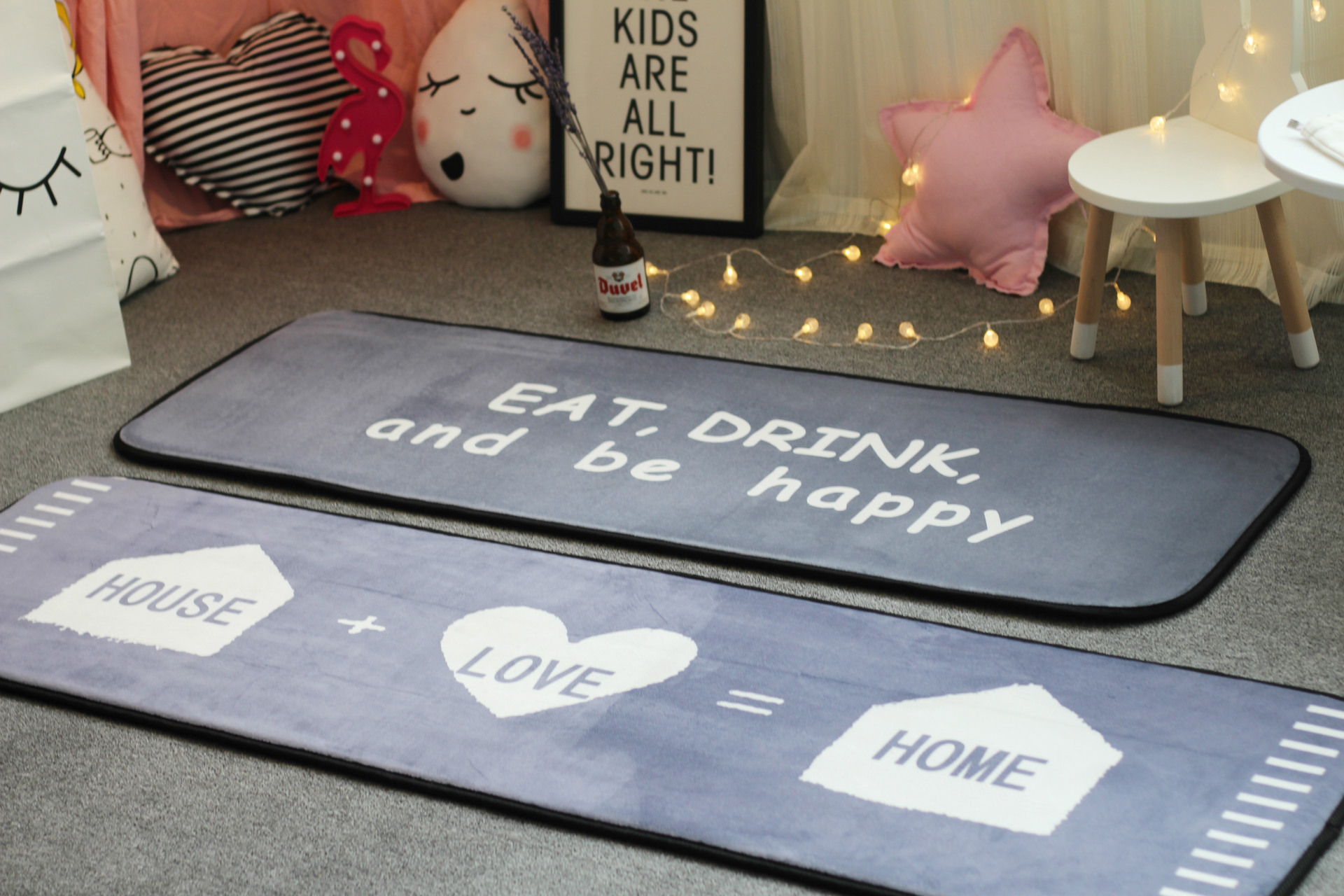 此款地垫厚度1.5cm,精致包边,底部环保,防滑点塑,无气味