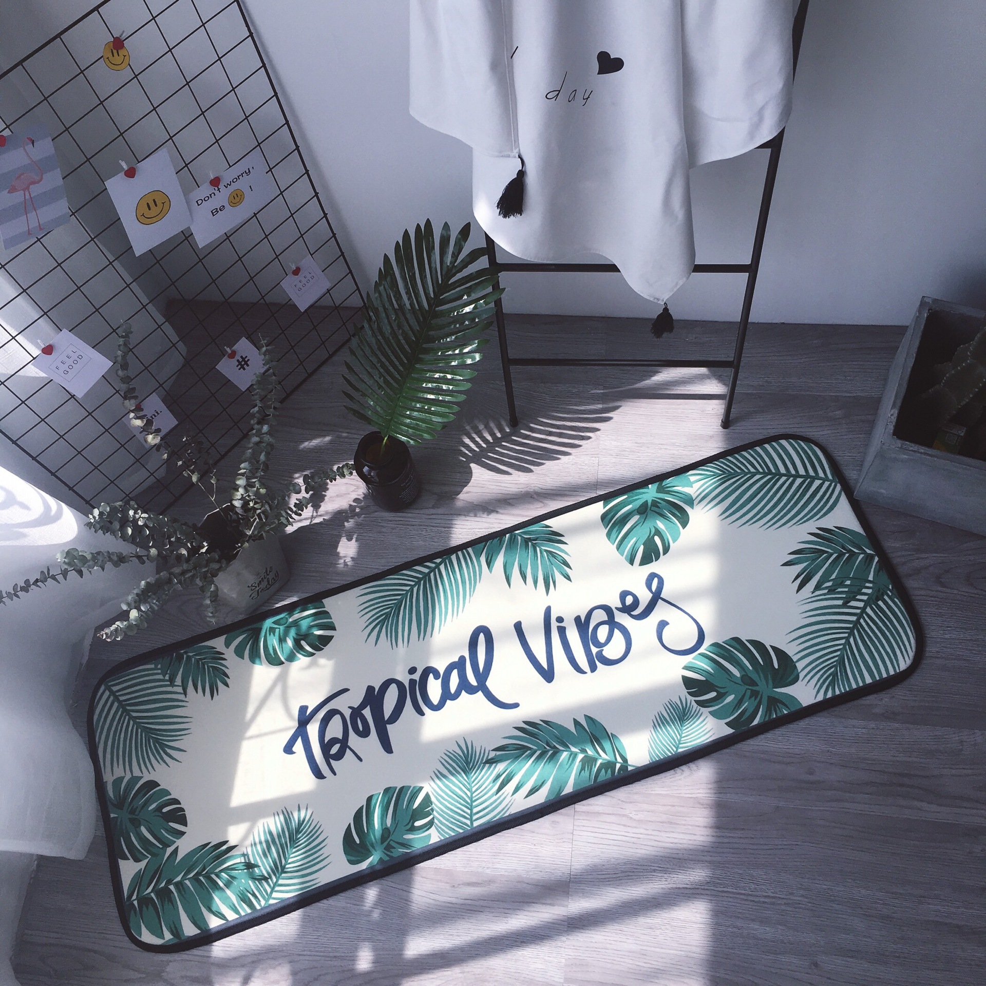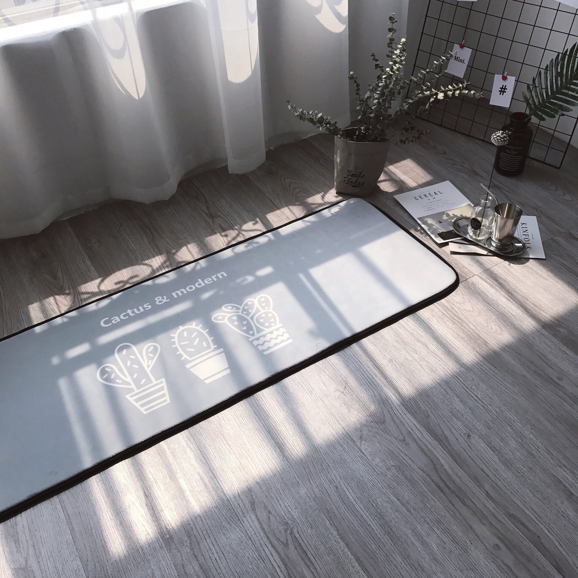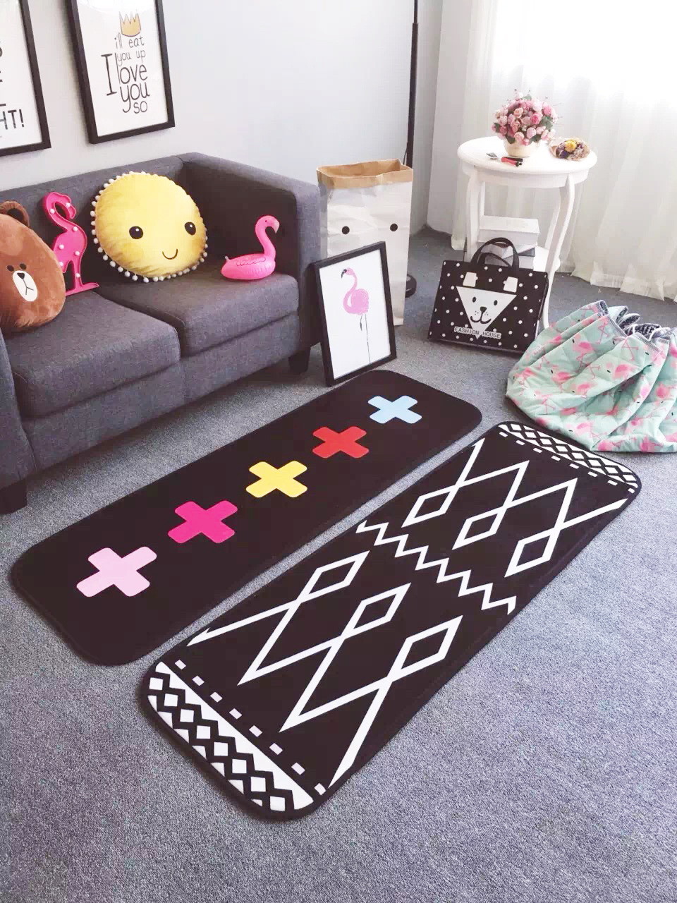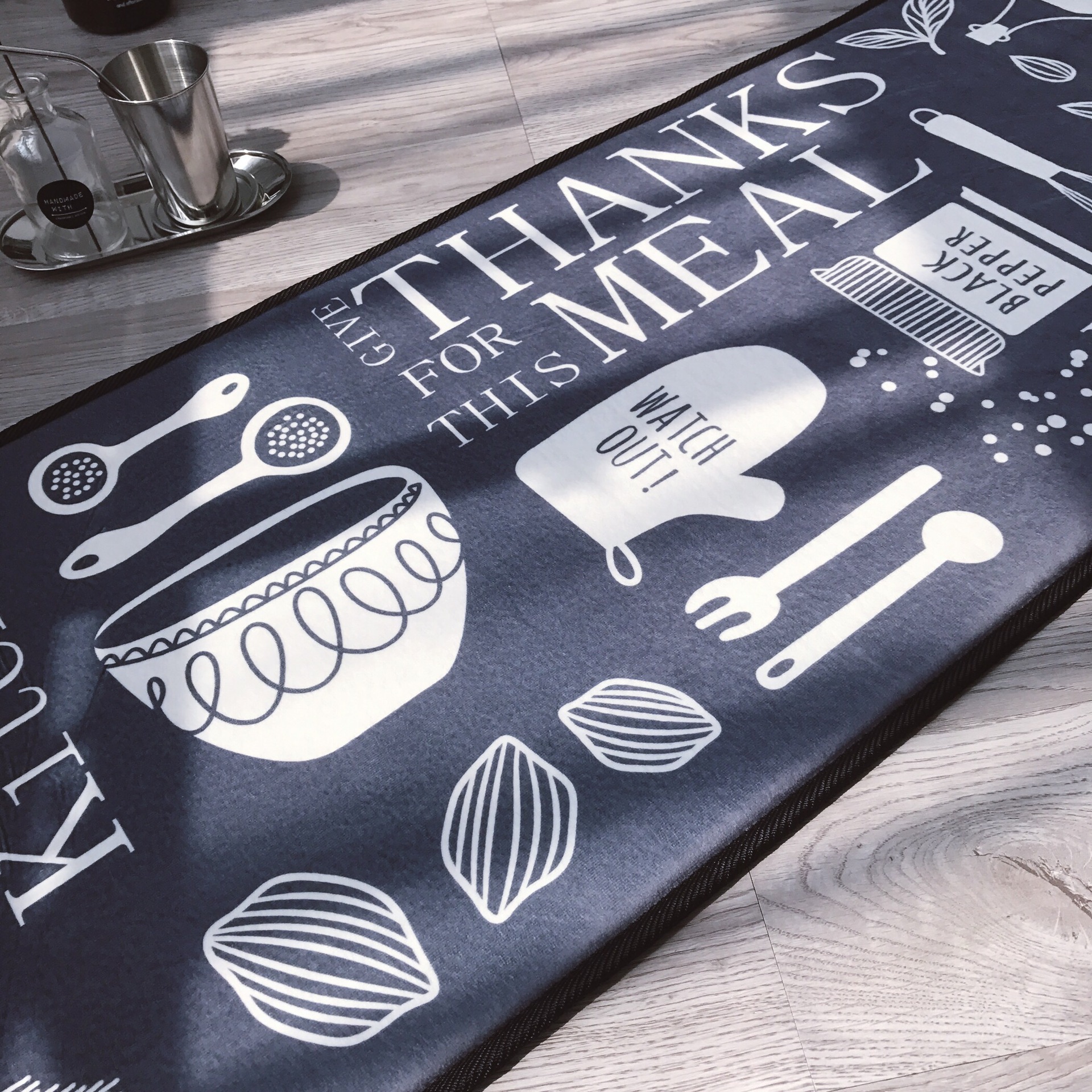此款地垫厚度1.5cm,精致包边,底部环保,防滑点塑,无气味