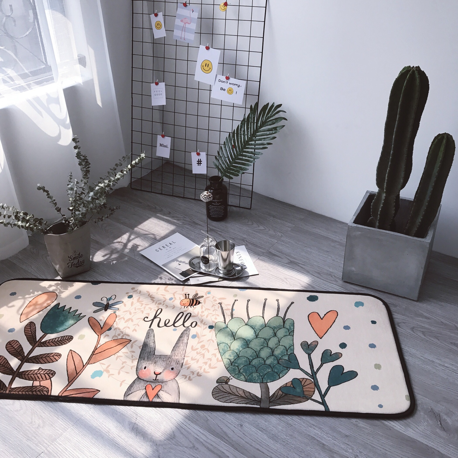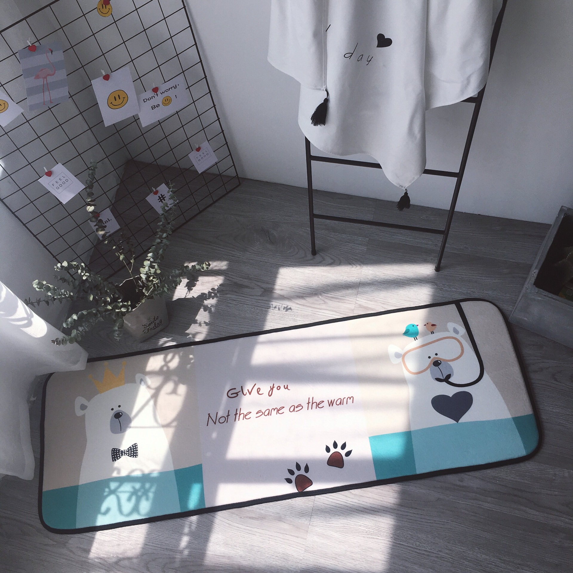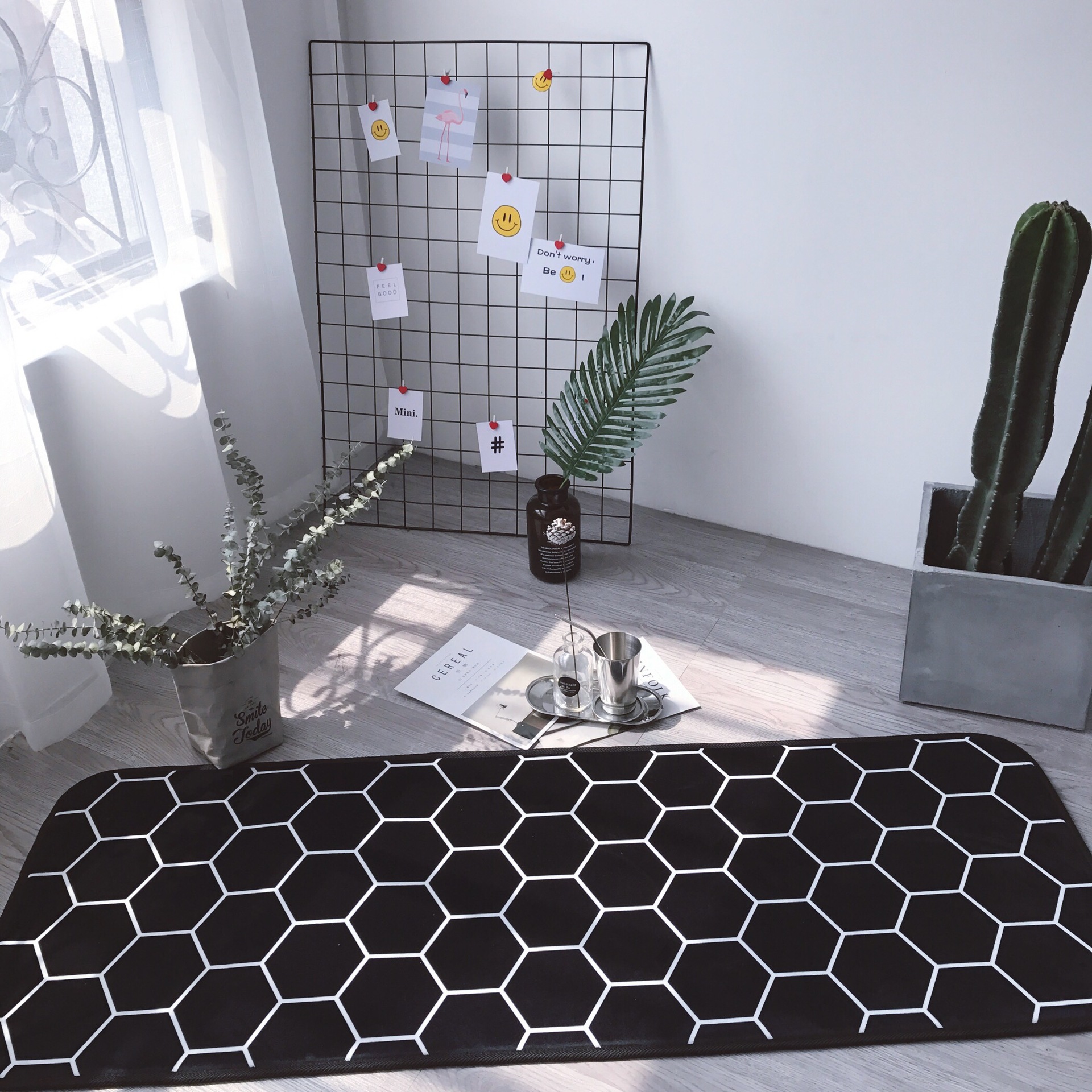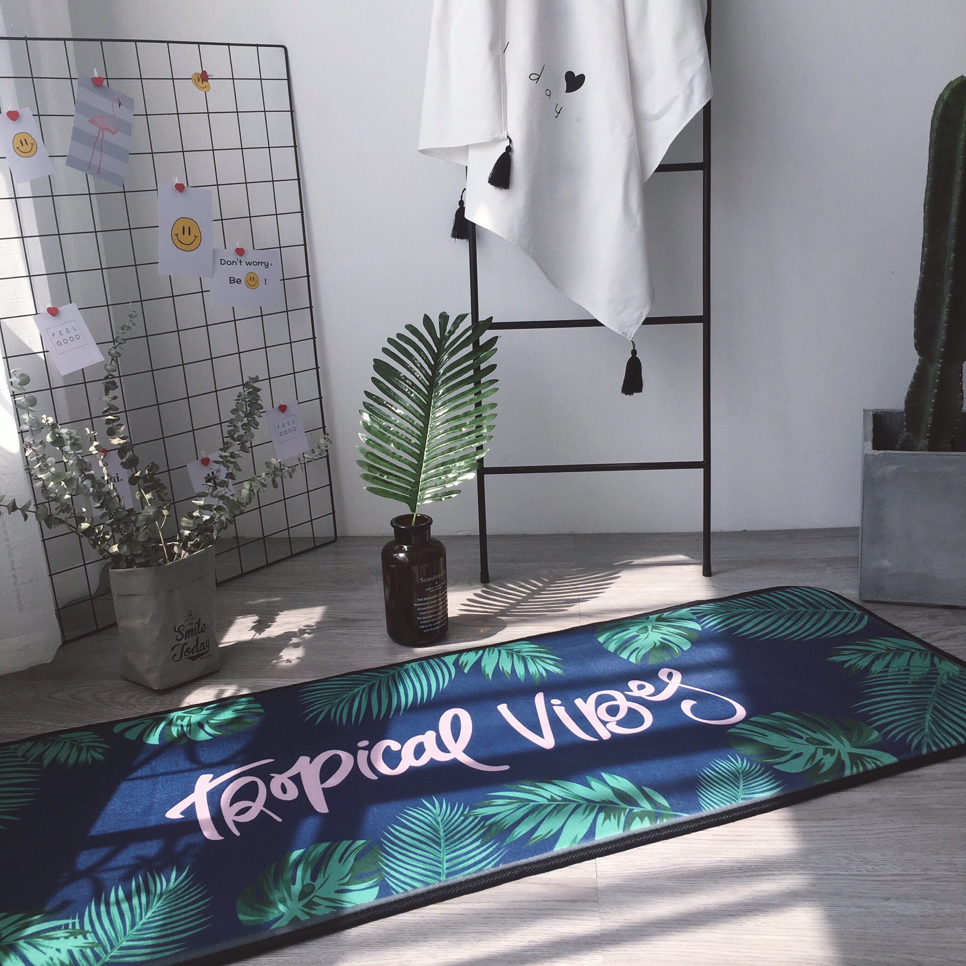 此款地垫厚度1.5cm,精致包边,底部环保,防滑点塑,无气味