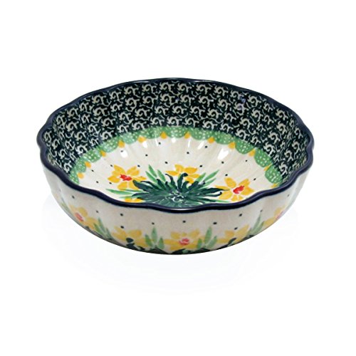 -. Title : Polish Pottery 4.5'' Fluted Dessert Dish Handmade Boleslawiec Stoneware Pattern Daffodils