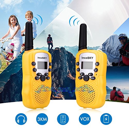 22 CHANNELS + 3 KM RANGE: two-way radios with an impressive 3 kilometer long range communication (open field) and 22 channels enable long distance play; besides outdoor activities for kids, also perfect for supermarkets, shopping malls, celebrations