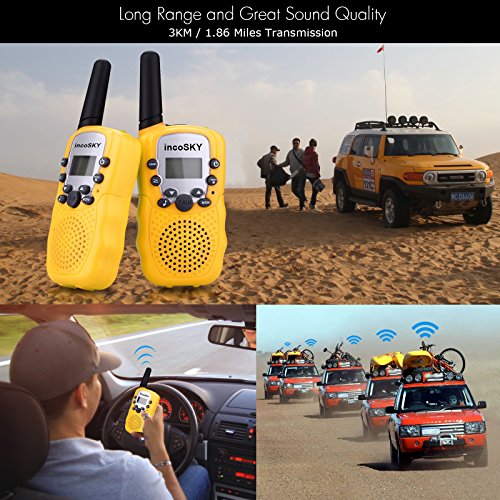 Long Range and Great Sound QualityThe talkie walkies have an impressive 3 kilometer long range communication (open field), and deliver crisp and smooth sound with adjustable electronic volume control. Even in a crowded or noisy place, you can still hear clearly.