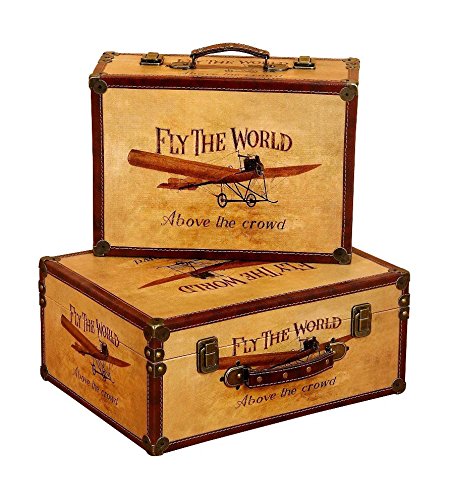 -. Feature : Vintage Small Suitcase Boxes Airplane Designs Leather Metal Latches Décor 72767
