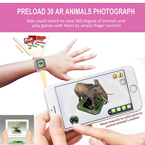 ❤ UPGRADE AR(Augmented Reality) VERSION:GBD Gen2 Pro smart game watch designed for your kids,Preload 30 animals photpgraph which put 4D virtual objects into a real scene showing a live image via parents mobile phone or kids tablets.You can switch to view 360 degree of animals and play games with them by simply finger control! COMPARE other competitor Standard Version game smart watch,kids can learn more in playing time from GBD Gen2