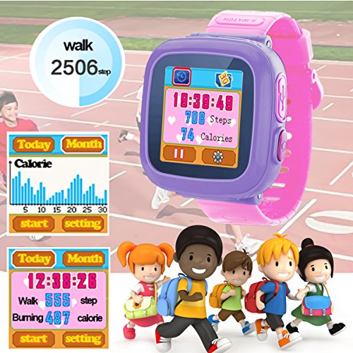 ❤ NEWEST LAUNCHED: GBD 2017 latest exclusive design in Princess Purple*Pink,Hero Gray*Green, Bold Red*Purple, receive with cute package perfect for kids gift;12/24H format selectable, compare other competitor kids smartwatch, more humanized.In addition to the alarm, timer and stopwatch, the watch has 2 new tools including a calendar feature and a calculator so your child can work out simple addition, subtraction, multiplication and division problems!Let kids enjoy their time!