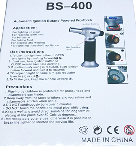 All aluminium construction Easy start and reliable piezo ignition Torch stays lit after initial ignition Gas and air flame adjustments Up to 1300°C flame temperature Huge refillable gas chamber Gas chamber and feed system all metal construction Ceramic flame guard Bench stand Wind-proof jet flame Water proof ignition system Safety ignition lock to prevent accidental lighting