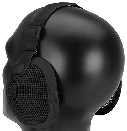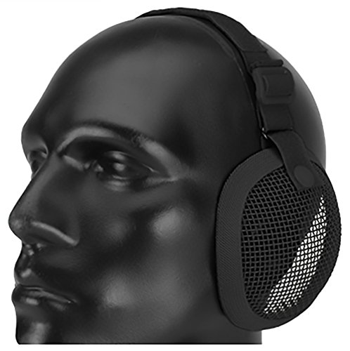 -. Feature : Highly protective wire mesh ear protection / Allows air flow while keeping out painful shots to the ear / Comfortable to wear under a helmet or mask / Includes top mounted hook & loop fasteners to attach inside of head gear / Adjustable elastic strap