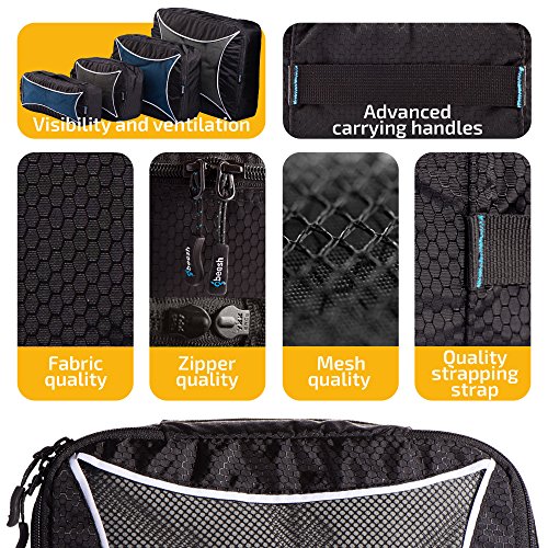EXTRA DURABLE: QBEESH Packing Cubes are made of high-quality lightweight NYLON with YKK zippers. Advanced Design with Additional Reinforced Seams. No broken zippers, no torn off meshes or frayed stitching
