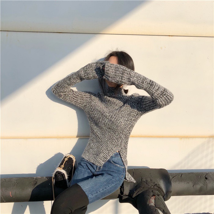 新しいファッション女性のプルオーバー不規則な裾タッセルストライプoネックフロントショートバックロングスリットカジュアル緩いセーター