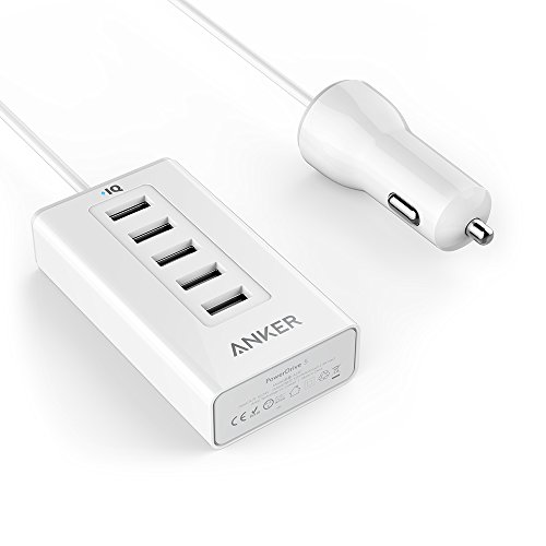 Anker 50W/10A 5-Port USB Car Charger PowerDrive 5 for iPhone 6/6 Plus, iPad Air 2/mini 3, Galaxy s6/s6 edge and More