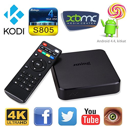 -. Feature : The box supports Root,True 1080p Quad Core XBMC/Kodi HD Playback! High performance Quad Core S805 CPU paired with the powerful Mali450 Octo Core 3D GPU Graphics Processor = Insane Media Performance. Watch your favorite movies and live streams with vivid and smooth playback. Hook up a USB mouse (not included) and play your favorite Android games on the big screen! / Built KODI (XMBC) playback software to meet your video needs, 8G ROM + 1G RAM (DDR3), support JUNING 7X fast and stable operation, with excellent performance. / Perfect run Android 4.4.2 operating system, compatible with the vast majority of Android APP, to meet the needs of different users, games, film and television, monitor, etc. / Support HDMI / AV OUT variety of video output, support WIFI b / g / n 802.1.1, RJ45, and other online mode, to meet different customer needs of different TV.
