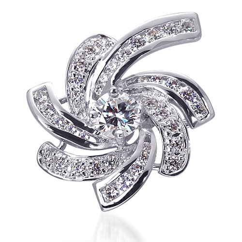 -. Title : Retro Style Sterling Silver Rhodium Nickel Finish CZ Swirling Lights Brooch