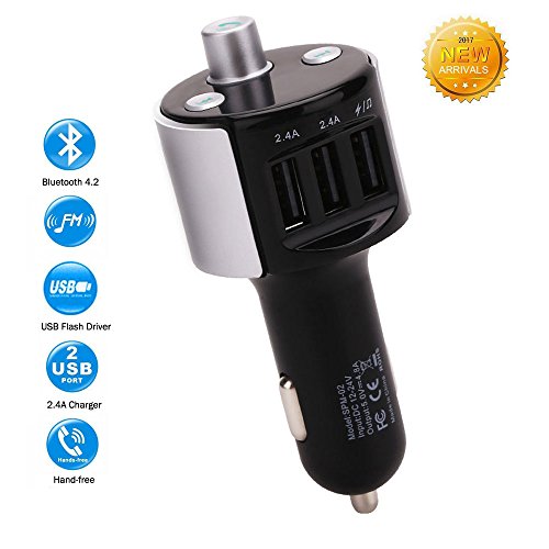Bluetooth FM Transmitter - Wireless Bluetooth 4.2 Receiver MP3 Player FM Radio Adapter Car Kit,Hands-free Calling with 3 Ports USB Car Charger 4.8A for iPhone Samsung Cellphones ipad