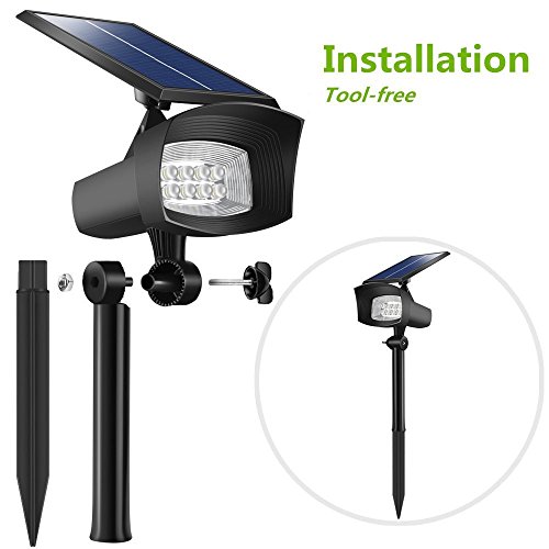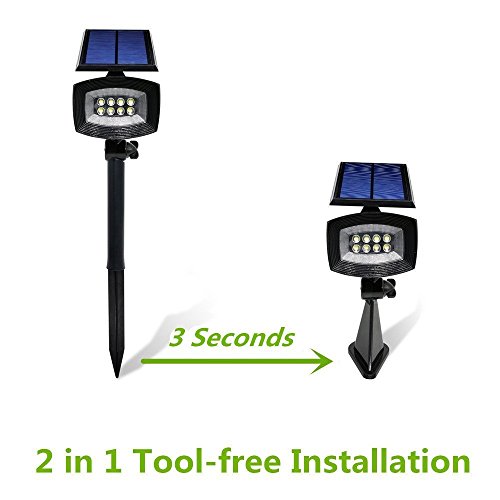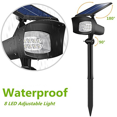 [Upgraded 400 Lumens]USYAO Super Bright 8 LED Solar Spotlight, 2 in 1 Installation, Long Working Battery, Adjustable Light and Panel,Auto-changeable Brightness Modes,Waterproof Home and Garden Using.