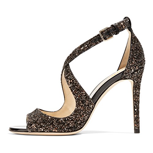 (XYD)/Women's/Sandals/DIRECT FROM USA/XYD Glitter Cross Strap Peep Toe Stiletto High Heels Buckles Dress Sandal Pumps For Women