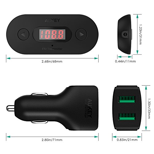 Keep Your Devices Powered Inside the package is an Aukey 2-Port USB car charger with AIPower smart charging technology. AIPower ports automatically match the current output with connected devices. This smart charger powers the FM transmitter and charges your mobile devices like smartphone and tablet when driving.