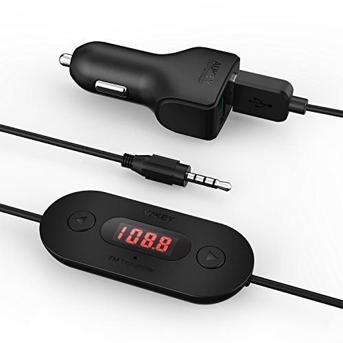 Aukey FM Transmitter Make the most out of your car radio system by connect with the Aukey FM transmitter and enjoy customized music selection from your own devices. The transmitter works on any device with 3.5mm output, including iPhone, iPad, Android/Windows smartphones, tablet, MP3 players, and more.
