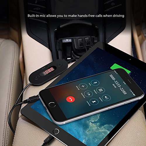Come with FREE 2-USB port car charger, equipped with Aukey AIPower technology, charging the transmitter and your smartphone, tablet, mobile device