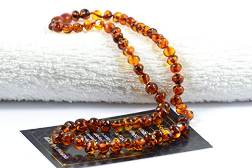 Baltic Amber Necklace for Women, Mom, Men & Adults – Headache, Migraine, Sinus, Arthritis, Carpal Tunnel, Nursing Pain Relief - Honey Color - 18 Inch (Cognac)