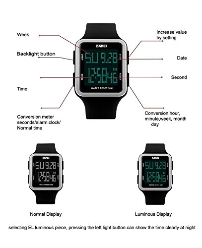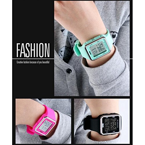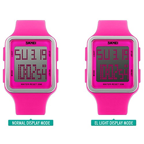 -. Title : Women’s Sport Digital Watch, Big Face Square, Waterproof and Multifunctional Watch - Soft Silicone Strap - Easy-to-Read Numbers – Water and Shock Resistant (rose red, pink)