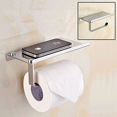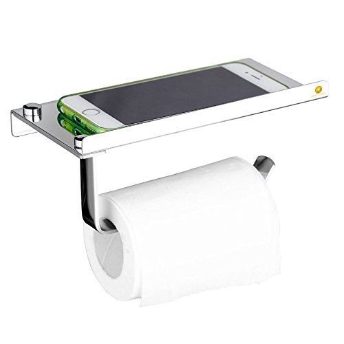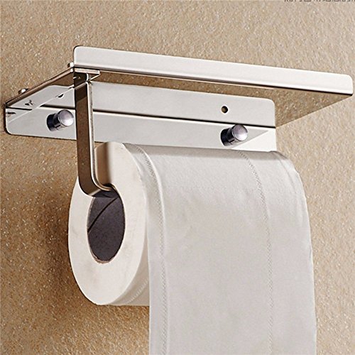 -. Title : Stainless Steel Wall Mount Toilet Paper Holder, 2-in-1 Bathroom Tissue Roll Holder Hook with Mobile Phone Storage Shelf, Paper Towel Holder and Cellphone Holder