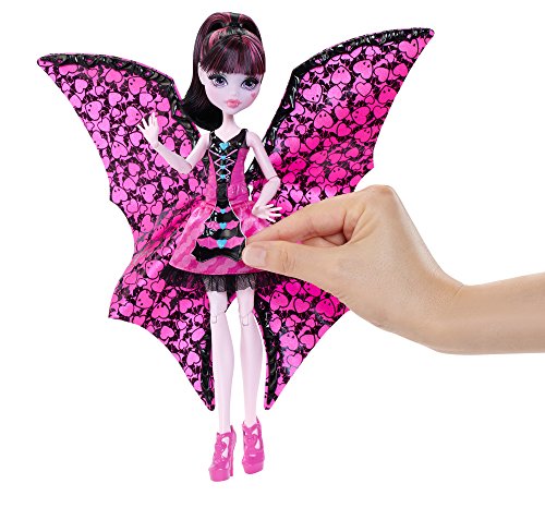 -. Binding : Toy -. Brand : Monster High -. EAN : 0887961310917 -. Feature : Draculaura doll who can transform from a teen ghoul to a vampire bat in an instant -- and over and over again! / Simply pull down the lever on Draculaura teen doll's bodice to see her shimmery pink overskirt unfold into body-sized wings! / Use the same fashion lever to return to a "regular" ghoul / Shimmery pink on the outside and decorated with a bat and heart print on the inside, the giant bat wings help stories take flight / As a ghoul, Draculaura doll has a pink bodice with white ruffles and a black bow tie, a pink skirt with heart print and gathered overskirt -. IsAdultProduct : 0 -. ItemPartNumber : DNX65 -. Label : Mattel -. Manufacturer : Mattel -. Model : DNX65 -. MPN : DNX65 -. NumberOfItems : 1 -. PackageQuantity : 1 -. PartNumber : DNX65 -. ProductGroup : Toy -. ProductTypeName : TOYS_AND_GAMES -. Publisher : Mattel -. ReleaseDate : 2016-04-13 -. Studio : Mattel -. Title : Monster High Ghoul-to-Bat Transformation Draculaura Doll -. UPC : 887961310917 -. Warranty : 1 year warranty against manufacturer defects