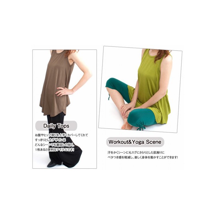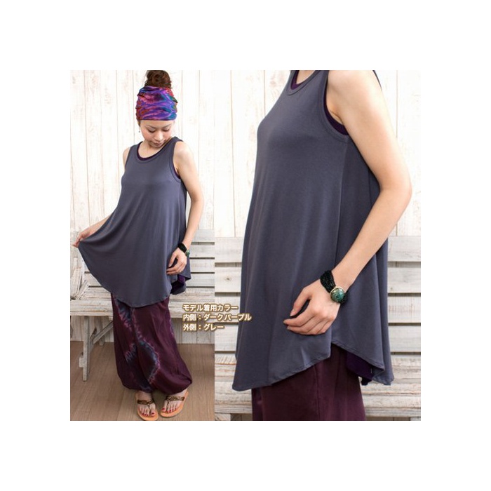 원본상품명: (ナドゥ) nadoo ヨガウェア フィットネス ダンス シャツ型 フレア ロング タンクトップ 240 (ダクグレ)