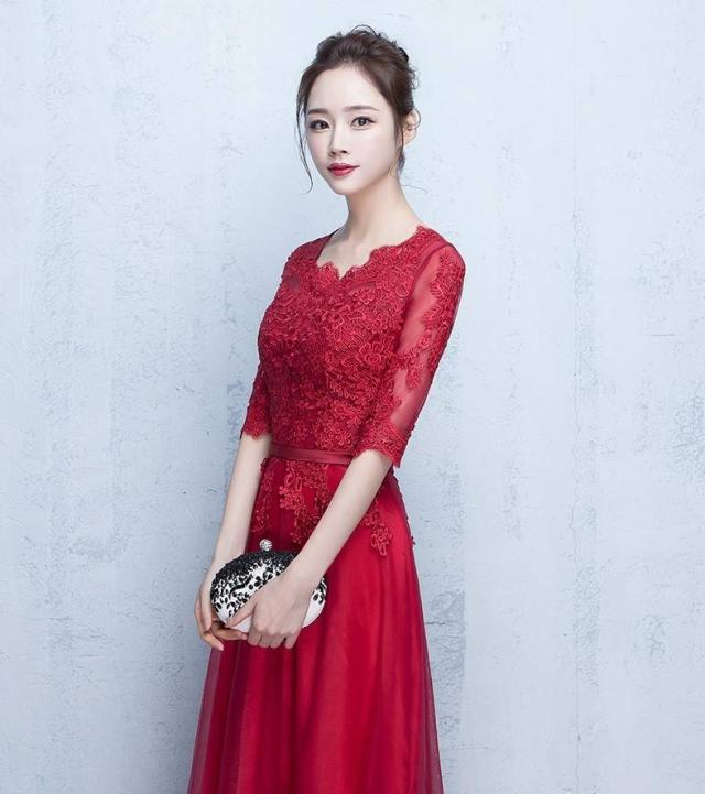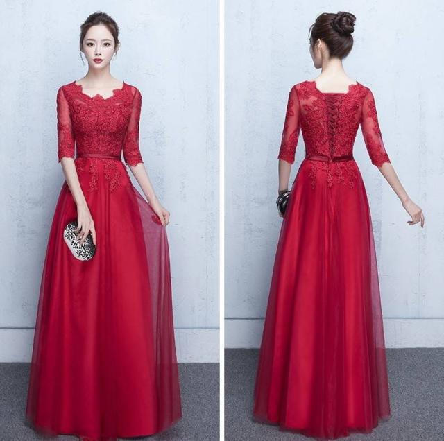 パーティードレス 結婚式 ワインレッド 五分袖 二次会 謝恩会 披露宴 卒業パーティー 成人式