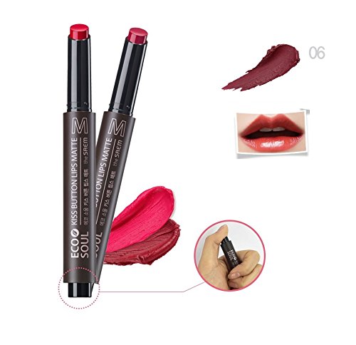 -. Feature : The Saem ECO SOUL kiss button lips matte / The soft matte lipstick expresses a rich color tone / 3 in 1 effect : Long lasting, high adhesion, High fix color