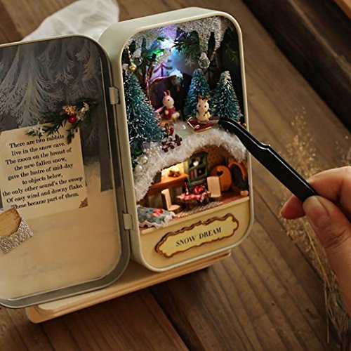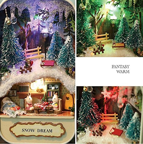 -. Title : Wisdom and Fun DIY Cottage,Rambling DIY Dollhouse Miniature 3D Doll House Kit Box Theatre Handcraft Gift Snow Dream