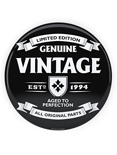Studio : Tenacitee Publisher : Tenacitee Binding : Apparel Product Description Aged to Perfection - 1994 2.25" Button by Tenacitee. Express yourself! Buttons are the perfect way to let the world know how you feel. Our buttons are designed, printed, and handmade at Tenacitee's studio in Oklahoma. Proudly made here in the USA! This 2.25" button has a metal shell with pinback and mylar cover to protect from scratches. Perfect to decorate your shirt, jacket, bag, or put anywhere else you want! It's a great gift or giveaway for parties. 0