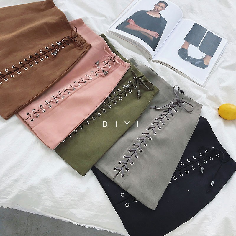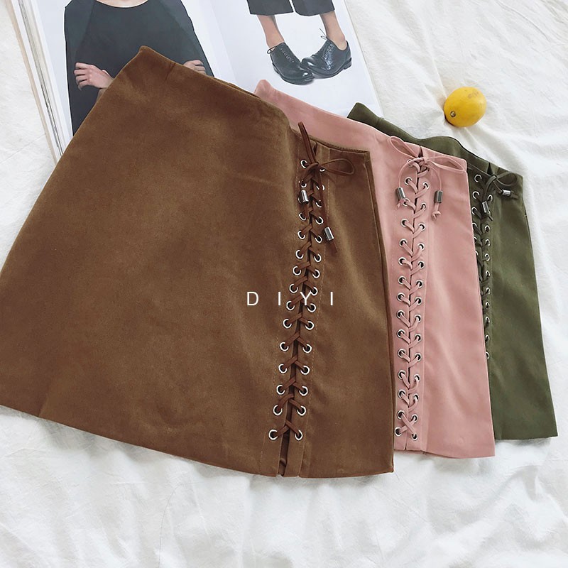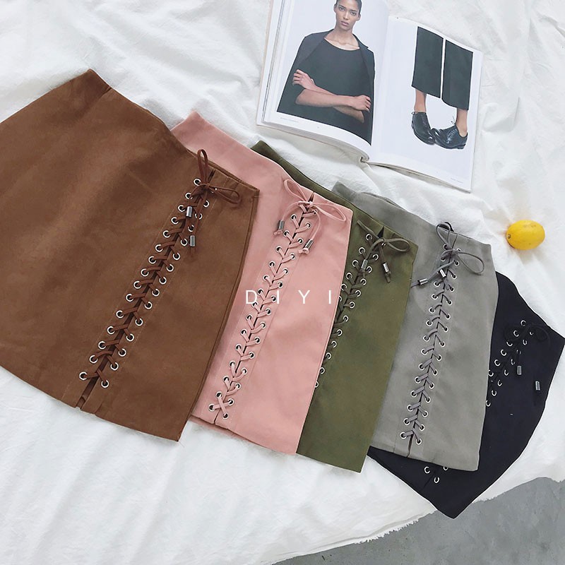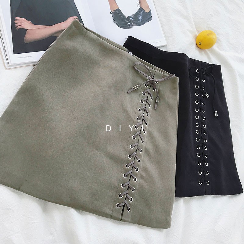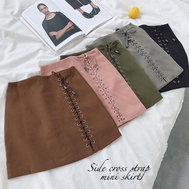 フロントサイドがレースアップデザインになったAラインショート丈スカート♪