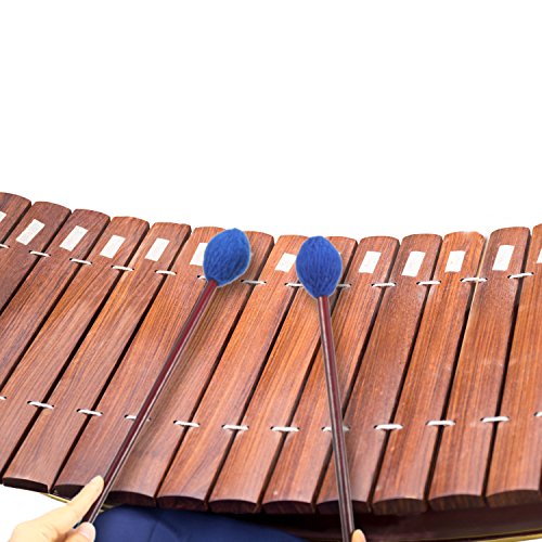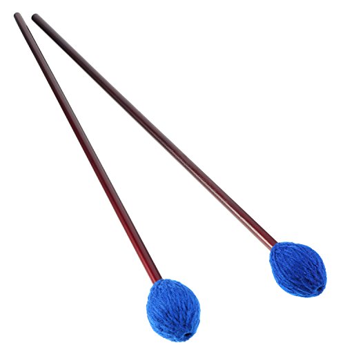 1 Pair medium hard yarn head keyboard marimba mallets with maple handles, blue Features: Medium yarn mallets: With medium hard round head for soft playing, suitable for all kinds of bass percussion instruments. Percussion mallets with long maple shafts: Offers you a proper weighted feel with these mallets; With smooth surface, comfortable to grip; And long enough to provide players with an increased reach range. Specification: Material: nylon yarn head, maple handle Color: blue head, dark brown handle Size (approx.): Total length: 42.5 cm/ 16.7 inch Head length: 4.5 cm/ 1.77 inch Head diameter: 3.5 cm/ 1.37 inch Handle length: 38 cm/ 15 inch Handle diameter: 0.8 cm/ 0.3 inch Package includes: 1 Pair of medium hard yarn marimba mallets 0