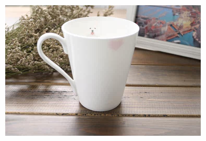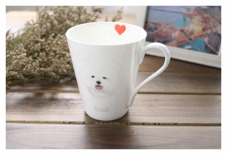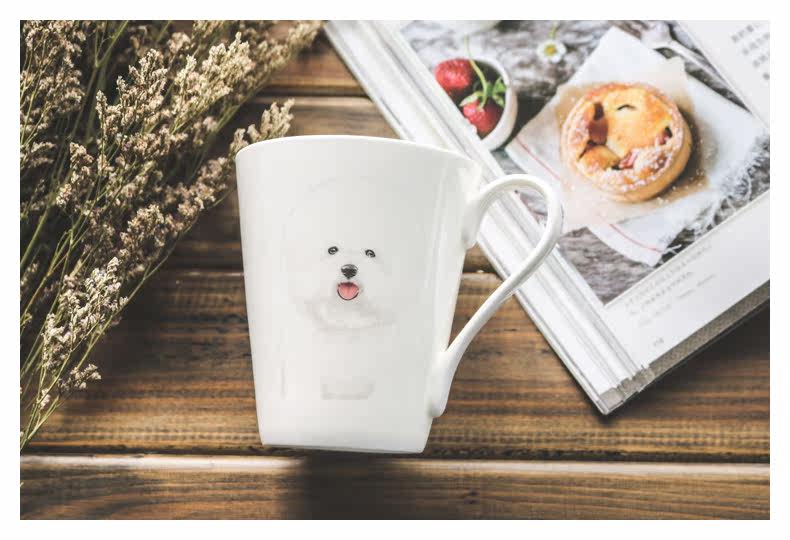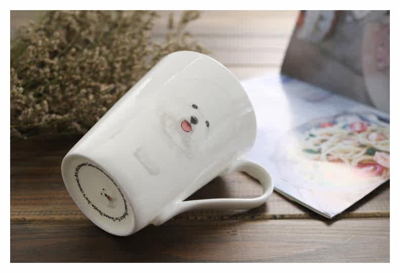 新可爱比熊系列动物陶瓷骨瓷马克杯子大容量麦片杯牛奶咖啡早餐杯