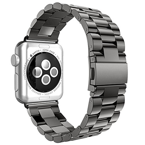 -. Title : Minidiva 42mm Apple Watch Strap Stainless Steel Metal Replacement Strap with Double Button Folding Clasp for Apple Watch