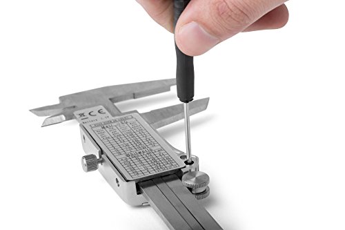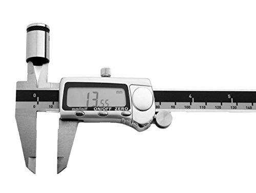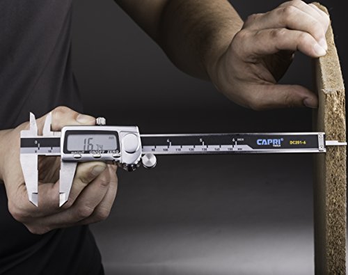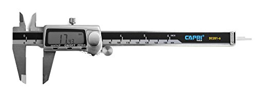 Tool is perfect for the most accurate measurements up to 0.0005-inch (0.01 mm) with depth-measurement probe and precision ground jaws. The large convenient LCD readout allows you to keep track of your work and is easy to read. Handy device also features a convenient one-touch button for switching between inches, mm and inch-fractions. The LCD display's helpful vibrant flashes of a low battery warning indicates when you need to recharge. The display can also be zeroed at any point. Caliper's frame and hardened shaft are made from premium stainless steel to ensure durability. Designed with a thumb-roll mechanism and position lock, tool provides slip-resistant and precise adjustments. The caliper also has an on-off switch with auto-off. Product comes with a small screwdriver to remove the battery cover, as well as a custom-fitted storage case and extra battery.Feature