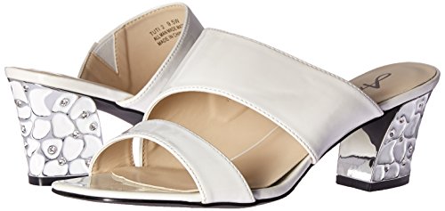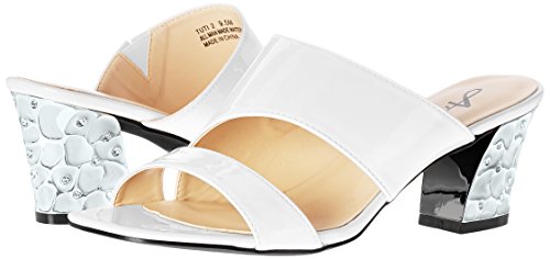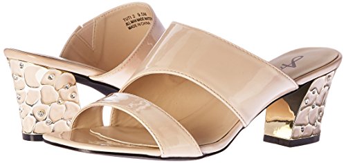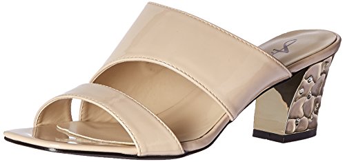 Studio : Annie Shoes Publisher : Annie Shoes Binding : Apparel Product Description Fashionable patent slide covers the foot in perfect proportions. two banded slide is featured in patent finishes and cool warm tones that compliment skirts, slacks and shorts. stunning matching metallic accented heel. 0