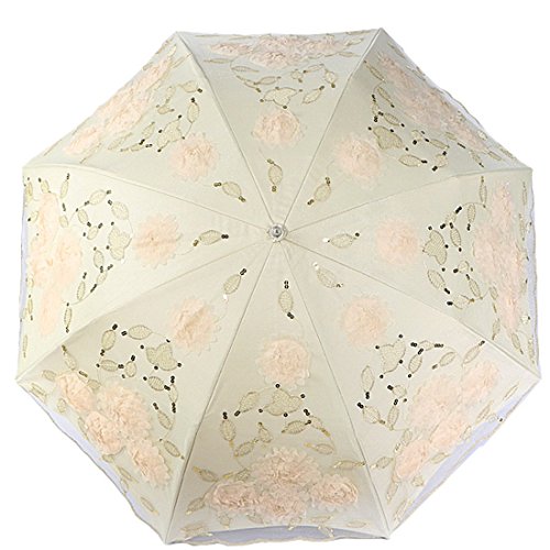 -. Brand : kilofly -. ClothingSize : One Size -. Color : beige -. Department : womens -. EAN : 0700580710268 -. Feature : Elegant parasol with classy vintage floral print and lace embroidery as shown in images / Perfect for everyday use, also fit for fancy occasions like weddings and garden parties / Lightweight and foldable - Can easily fit into your handbag / UPF 40+, T(UVA)<15% / Size : 83 x 66 cm / 33 x 26 inch (W x H) when opened; 35 cm / 14 inch (L) when folded -. Model : UBL337 -. MPN : UBL337 -. PartNumber : UBL337 -. ProductGroup : Apparel -. ProductTypeName : LAGE -. Size : One Size -. Title : kilofly Anti-UV Lace Embroidery Sun Protection Folding Parasol Rain Umbrella -. UPC : 700580710268
