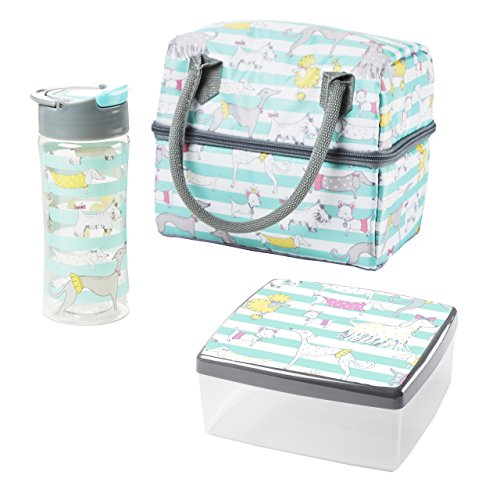 Fit & Fresh Ivy Insulated Lunch Bag with Chilled Container Set and Matching Water Bottle (Stripe Dog Park)