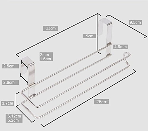 Studio : Basong Publisher : Basong Product Description 100% Brand New and High Quality Dimension:26x6.5x9cm/10x2.6x3.5inches Weight:205g The door or cabinet thinkness should less than 2.5cm/1inches Features: 1.Stainless steel tissue rack,not easy get rust.More sturdy and stronger than other rack. 2.Do not need any nails,can hung on the door,cabinet,cupboard or wall.More cabinet,can move it freely without hassle. 3.Position left or right against the cabinet, under a cabinet or even vertically. 4.No more space occupying, toppling over kitchen roll trees. Box Contains: 1 Tissue Holder. 0