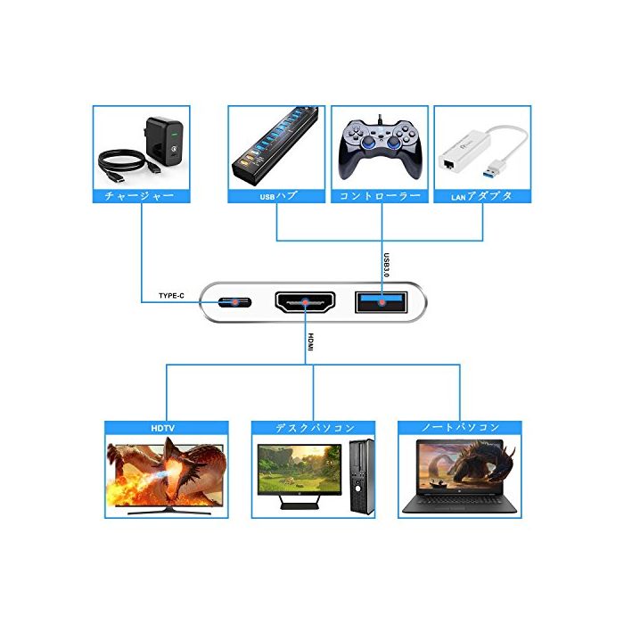 ◆【전기종 대응】:본 제품은 HDMI단자,Type-C단자,USB3.0단자와 구성합니다.닌텐도Switch게임기「비디오 출력 확장」고, HDMI투영하고, 완벽한 오름 청4 K / 30fps동영상 표시를 대응합니다!거기에(게다가)데이터,비디오,음전송 기능이 탑재 하고 있습니다.길이는 잘 다루기 쉬운 157mm가 되고, 언제라도 게임을 즐길 수 있습니다.
