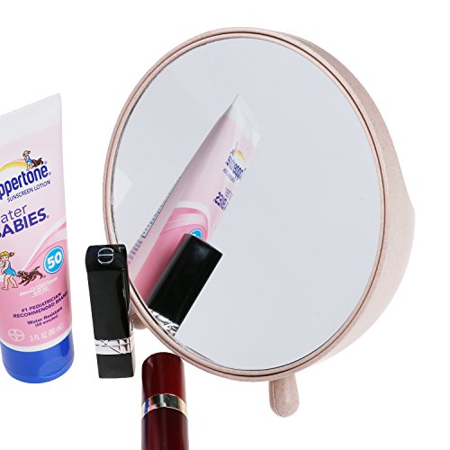 TSACTE Makeup Vanity Mirror Tabletop Mirror Desktop Mirror Plastic Cover with Storage Function Standing (Pink)