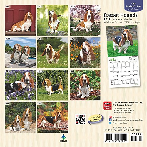 -. Feature : This mini 18-month wall calendar measures just 7" x 7", which makes it perfect for small spaces. / Big loving eyes and long soft ears make Basset Hounds irresistible. And although they love to nap, they are not a lazy breed. Basset Hounds are full of wonder, curiosity, and mischief. They're relaxed, social dogs that are good with children. Bring home some adorable Basset Hounds with this mini wall calendar.