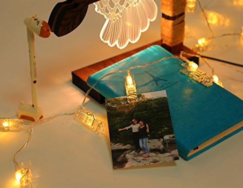 - ☀ Portable string light in your hands with infinite possibilities. Each photo-clip contains an LED that emits a warm white light, a fun addition to any space. Perfect for decoration indoor or outdoor.