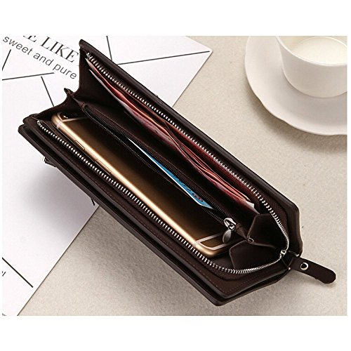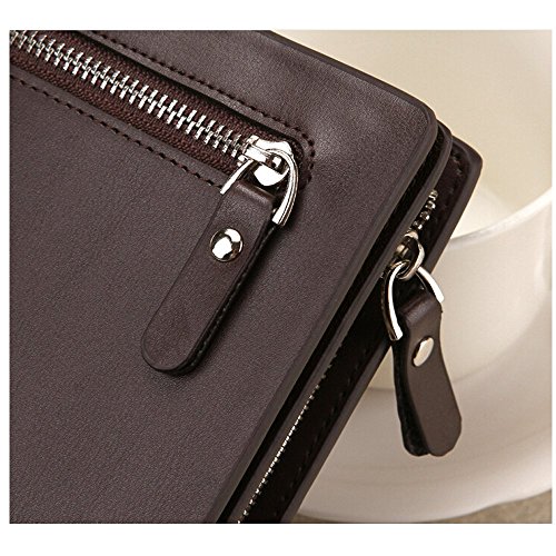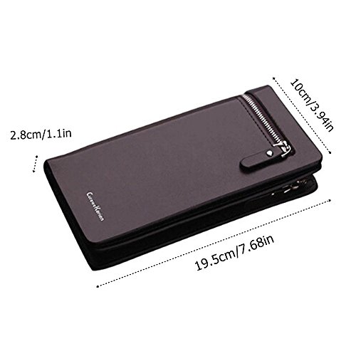 PU Leather, durable and waterproof. PU leather with stylish out-looking. This clutch bag is perfect for business men. Multi-functional wallet. 12 card slots, 2 bill pocketsr,1 ID card display window. Small but large capacity,multilayer, perfect design for storing phones,cashs, coins, credit cards, identification, and photos, fashion and practical, hight-capacity and convenience, necessities for life. Thieves are becoming increasingly smarter in stealing personal information. With the metal zipper, keep your personal information contained within your credit cards safe. Slim bi-fold flip wallet, easy to carry around, can put iphone 6plus, iphone 6s, Samsung Note 5 Samsung S6 inside. Women can easily use it as well, this product for not only men but women may like this too. A perfect gift for your friends, father, brothers. Also for Groomsmen, Birthdays, Christmas, Anniversaries, Father's Day, Valentines Day, and other special occasion.
