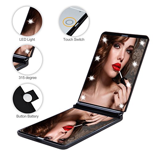 Lighted Makeup Mirror 315 Degree Travel Portable Vanity Mirror with 8 LED Lights and Small Pocket Mirror for Girls(Black)