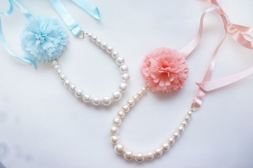 gCotton Pearlh is made by compressed cotton with pearl coating instead of resin or glass, so the weight of the beads is much lighter than the usual pearls, which is more suitable for little girls. These real cotton pearls are only made in Japan.