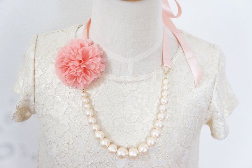 Lily & Ally / Cotton Pearl Satin Ribbon Kid's Necklace With Chiffon Flower
